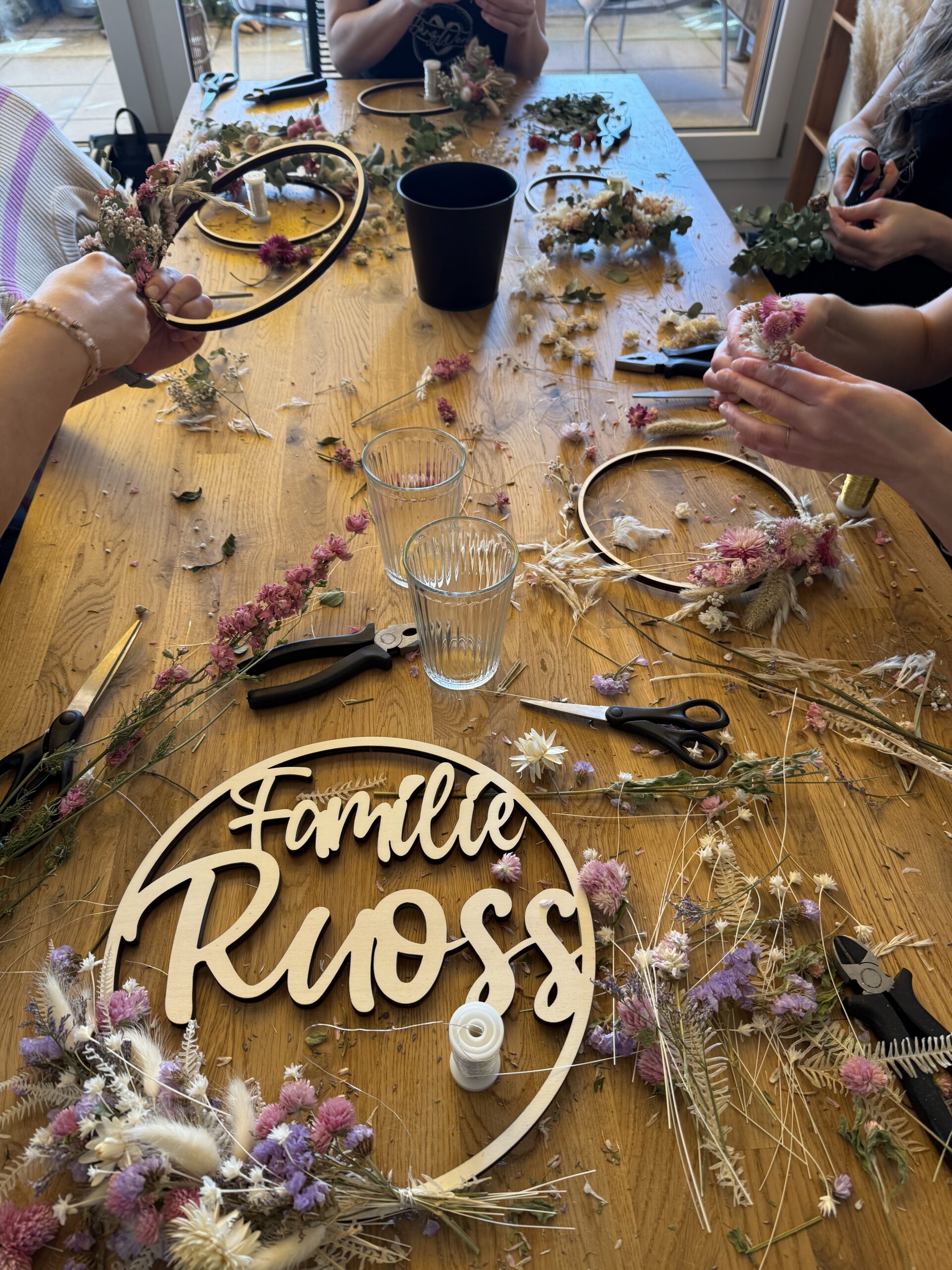 Wer kennt ihn noch nicht, der dekorative Reif alias Loop. Zusammen mit der Mechstubä personalisieren wir für dich sogar den Reif und du hast ein Unikat für dich zu Hause oder zum verschenken. Ob Familie Sowieso oder Emma, ob Welcome oder Hereinspaziert. Du wählst den Text und die Grösse im voraus und am Kurstag dekorierst du ihn mit den passenden Trockenblumen. Natürlich kannst du auch einen schlichten runden Loop ohne Text gestalten.